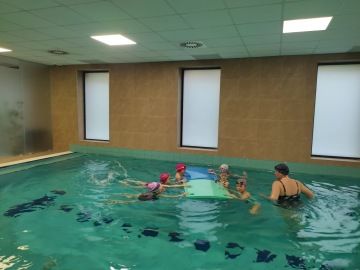 Každé pondělí od 10 do 11 hodin plaveme na dvě skupinky pod vedením lektorky Daniely Čermákové v dobřichovickém bazénu. Učíme se souznít s vodou... foukáme do vody, potápíme se, splýváme, skáčeme a pohybujeme se ve vodě. Plavání nás moc baví a plavat budeme až do června. Příští rok budeme opět jezdit s předškoláky na jaře plavat.