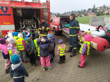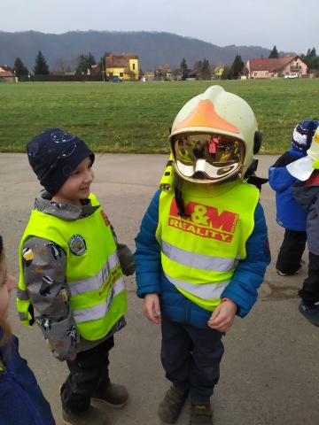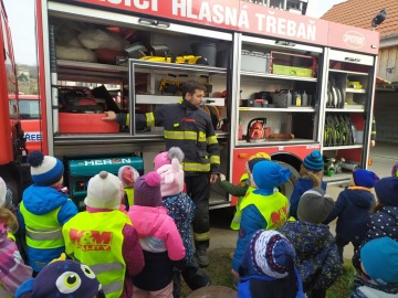 S dětmi jsme se vypravili do místní hlasnotřebaňské hasičárny, kde nám hasiči ukázali, co vše ke své práci potřebují, prohlídli jsme si hasičská auta zevnitř a vyzkoušeli jsme si hasičskou výstroj.
