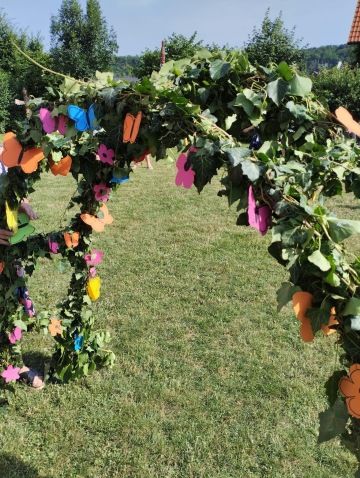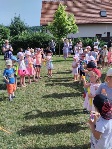 Koncem června jsme se v naší školce rozloučili společně s dětmi a rodiči na naší zahradě. Přijelo k nám divadélko Pruhované panenky, které nám zahrálo představení o Kryštůfkovi, který bloudil lesem a až nabyl moudrosti, podařilo se mu najít cestu zpět domů. Stejně tak i naši předškoláci umí a ví vše, aby mohli opustit naší školku a vejít tak do školního světa. A tak divadelní představení bylo volně provázáno s rozloučením našich předškoláků, kteří byli slavnostně pasováni na školáky. Každý budoucí školák dostal od nás knihu s věnováním a placku s potiskem na památku.